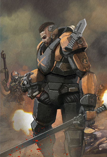 Piloting ranged SAs only require one to pull a trigger, but to pilot melee combat SAs require one to possess superb skills and reflexes. Seasoned in all sorts of combat arts, Douglas believed this was his chance to shine, a shortcut to the top. Therefore he, much like everyone else, took part in the SA games hosted in the Tartarus arena, and the result did indeed rewrite his life. He performed well early on in his career, and he finally got the chance to be selected as a participant in the upcoming official tournament. Even without the support from royalty or corporations, he believed he could make it all the way to the top with his own two hands. But when he was utterly crushed by an opponent piloting a highly advanced SA heavily sponsored by the royalties, he realized that it was never possible to overcome the difference in strength from the beginning, he came to realize the harshness and unfairness of reality. Douglas lost everything in that match, his body was damaged beyond any normal means of recovery. He cannot help but accept his fate to undergo the cybernetic transformation into an Abaddon Reborn Trooper. He was assigned the experimental flame troopers unit, serving the army was never his dream, but Douglas was not one who took self-pity. Once he adapted to the new battlefield, he decided to start over with a newly fueled pragmatism. With the experiences and lessons he learnt in Tartarus, Douglas eventually made his way to commander.