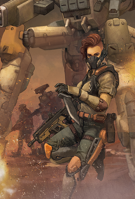 Like many Agurtans, Captain Moirah of the Corsac Quick Reaction Forces (attached to the 88th Sand Team) came from abroad. Her family traveled from the east - from the other side of the Estancian Gray Zone - to eventually settle in Baluard at the feet of the Tritan mountains. It was here that Moirah met another immigrant: Laina Djemai. The two became fast friends as well as rivals, each always seeking to outdo the other in daredevil feats. They even joined the army together, planning to form a deadly duo - but were ultimately given different assignments. Promising to rise through the ranks and meet later, the two separated. Moirah was sent to the deserts of the Estancian Gray Zone she had crossed as a child. She found the sands to her liking, a place where her tempestuous personality and willingness to banter matched well with the gritty wit valued by the 88th. She was given over to the Corsac Quick Reaction Forces and gained a reputation for being the first in and last out, eventually resulting in her promotion to captain. Recognizing her achievements, she was authorized by top Agurtan military leaders to equip leg bracers and boots of the AEGIS exoskeleton armor, further enhancing her agility and combat prowess. Recently she hasn’t heard from her friend Djemai, but she’s excited for the day the two finally reconnect and share war stories in one of the Baluardan dive bars of their youth.