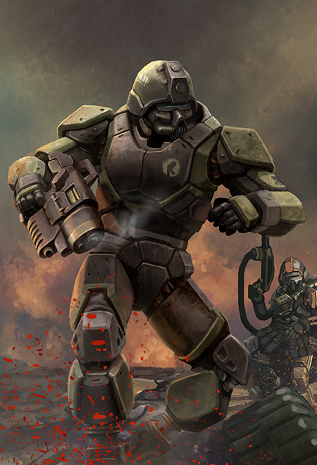While mechanic prostheses are the solution to troops suffering minor injuries or disabilities, those with more severe injuries are turned into Abaddon Reborn Troopers. Leaving vital organs intact, the majority parts of the troopers’ bodies are replaced by mechanics. Although combat capabilities are greatly enhanced, the transformation places a lot of psychological stress on the subject both during and after the process. In response to this, the Omanga military has set up departments in psychological analysis and psychotherapy. The department later expanded a workshop that specializes in psychological warfare.