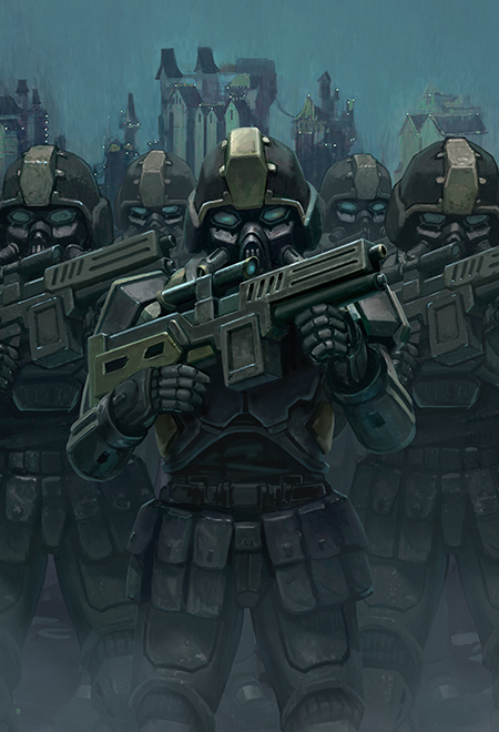 Being one of the strongest and most advanced military force, the Omanga people are actually generally weaker due to severe pollution and radioactive poisoning. The Omanga military makes up their soldiers’ weak physique by developing a multi-armor support system. This technological masterpiece is capable of offering both agility and reinforced defense at the same time.The multi-armor was first allocated to the Abaddon Troopers, drastically improving their combat prowess and instantly outclassing neighboring infantry forces.