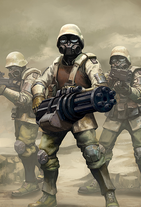 The Sand Infantry are the main ground force of the 88th Sand Team, equipped with second generation infantry armaments designed specifically for prolonged combat in desert environments.