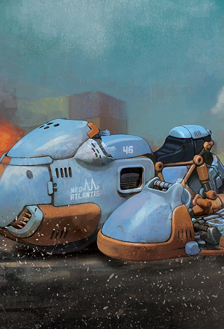 The Maritime Preton is a motorcycle model frequently deployed by Neo Atlantis to patrol ports and escort shipments. It features a convenient sidecar that alternates between passenger and cargo modes, ensuring the safe and stable transport of both goods and passengers.