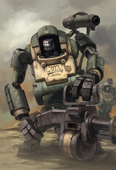 The Marine Laurel LA3m is a 3rd Generation Laurel deployed for the Marines. The engineers outfitted this armored unit with a heavy shoulder machine gun and a mech-held mega grenade launcher, greatly increasing its combat capabilities in actual fields of battle.